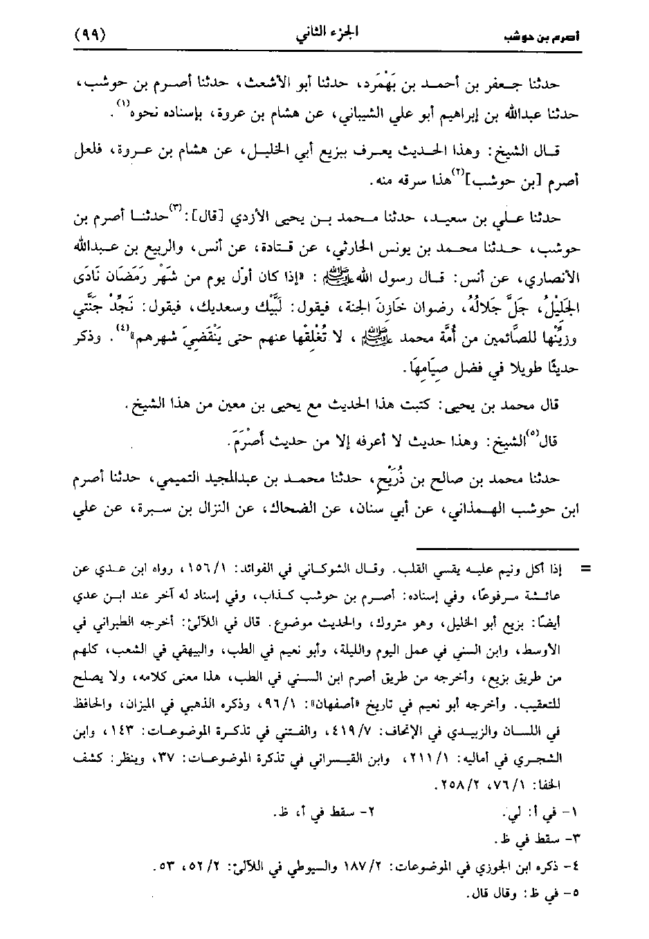 قَالَ الشَّيْخُ: وَهَذَا الحديث يعرف ببزيع أبو الْخَلِيلِ عَنْ هِشَامِ بْنِ عُرْوَةَ فَلَعَلَّ أَصْرَمَ بْنَ حَوْشَبٍ هَذَا سَرَقَهُ مِنْهُ.