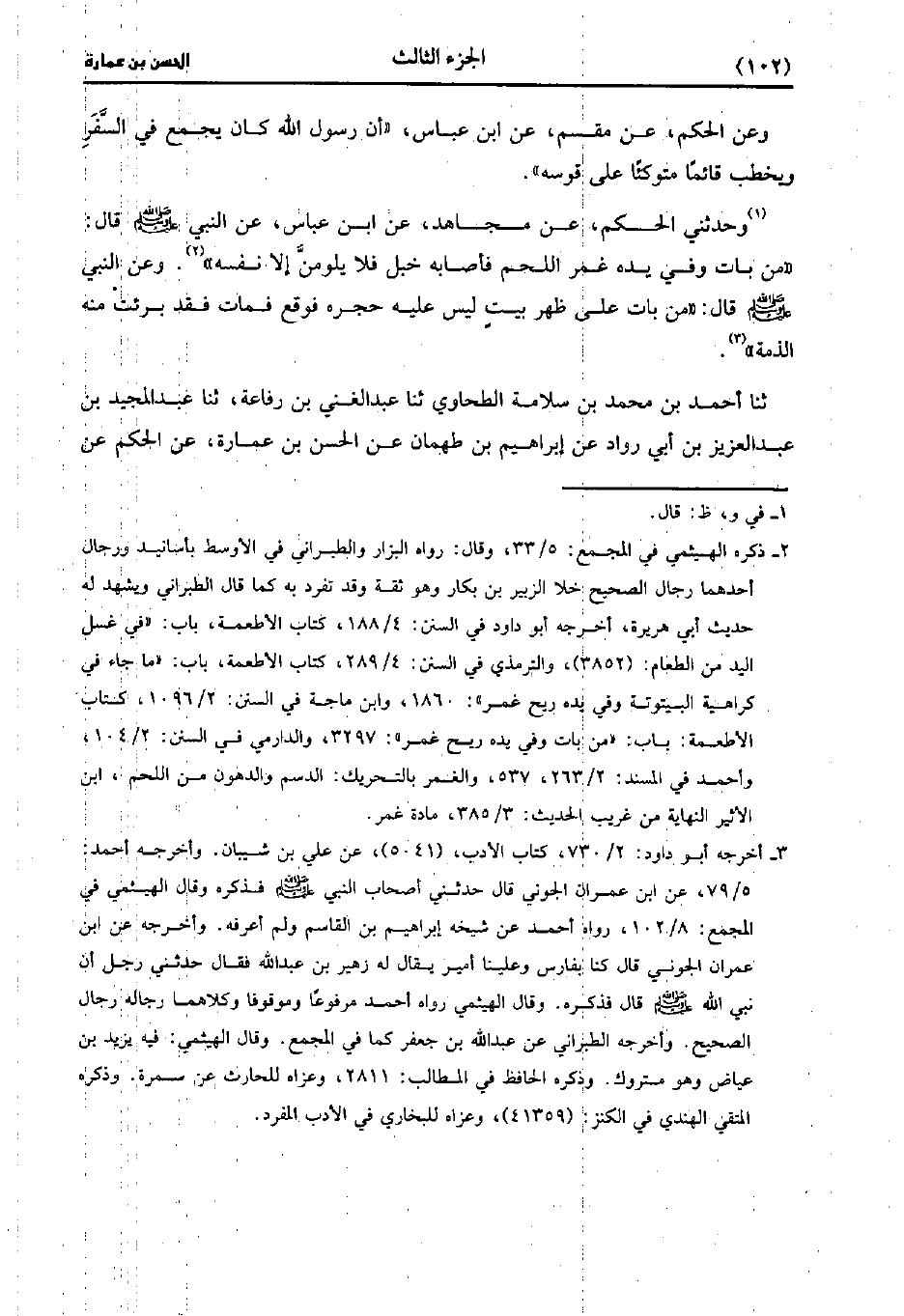 حَدَّثَنَا أَحْمَدُ بْنُ مُحَمد بْنِ سلامة الطحاوي، حَدَّثَنا عَبد الغني بن رفاعة، حَدَّثَنا عَبد الْمَجِيدِ بْنُ عَبد الْعَزِيزِ بْنِ أَبِي رَوَّاد، عَنْ إِبْرَاهِيمَ بْنِ طَهْمَانَ عَنِ الْحَسَنِ بْنُ عُمَارَةَ عَنِ الْحَكَمِ عَنْ
