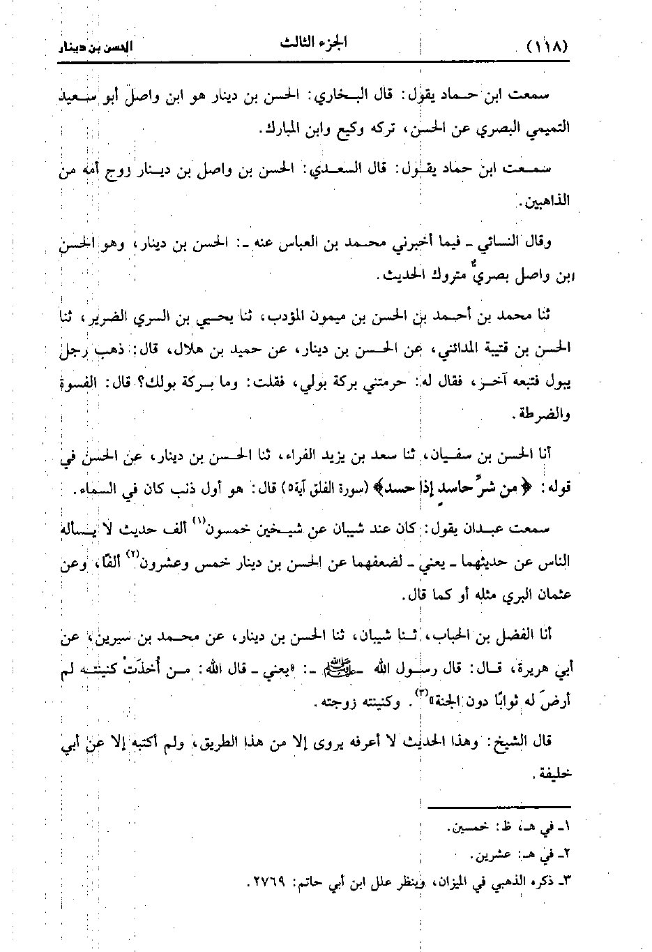 سمعتُ ابن حماد يقول: قال البُخارِيّ الحسن بن دينار هو بن واصل أبو سَعِيد التميمي البصري عن الحسن تركه وكيع، وابن المبارك.