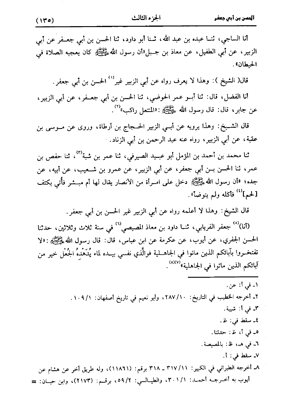 انا الفضل، قَال: حَدَّثَنا أبو عُمَر الحوضي، حَدَّثَنا الْحَسَنُ بْنُ أَبِي جَعْفَرٍ، عَن أَبِي الزُّبَيْرِ عَنْ جَابِرٍ، قَال: قَال رَسُولُ اللَّهِ صَلَّى اللَّهُ عَلَيْهِ وَسَلَّمَ الْمُنْتَعِلُ رَاكِبٌ.