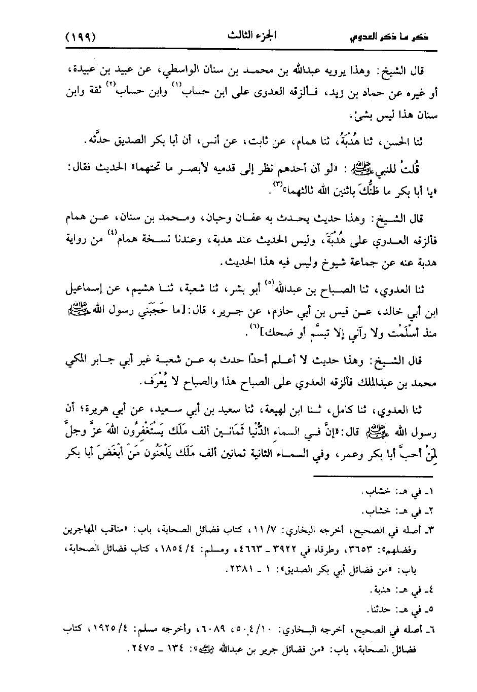 قَالَ الشَّيْخُ: وَهَذَا حَدِيثٌ يُحَدِّثُ بِهِ عَفَّانُ وَحِبَّانُ، وَمُحمد بْنُ سِنَانَ عَنْ هَمَّامٍ فَأَلْزَقَهُ الْعَدَوِيُّ عَلَى هُدْبَةَ وَلَيْسَ الْحَدِيثُ عِنْدَ هُدْبَةَ وَعِنْدَنَا نُسْخَةُ هَمَّامٍ مِنْ رِوَايَةِ هُدْبَةَ عَنْهُ عَنْ جَمَاعَةِ شِيُوخٍ وليس فيه هذا الحديث.