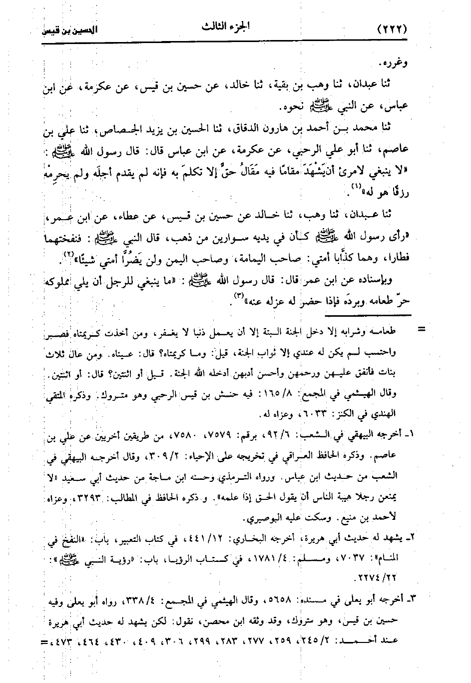حَدَّثَنَا عَبْدَانُ، حَدَّثَنا وَهْبُ بْنُ بقية، حَدَّثَنا خَالِدٌ عَنْ حُسَيْنِ بْنِ قَيْسٍ، عَنْ عِكرمَة، عنِ ابْنِ عَبَّاسٍ عَنِ النَّبِيِّ صَلَّى اللَّهُ عَلَيهِ وَسلَّمَ نَحْوَهُ.