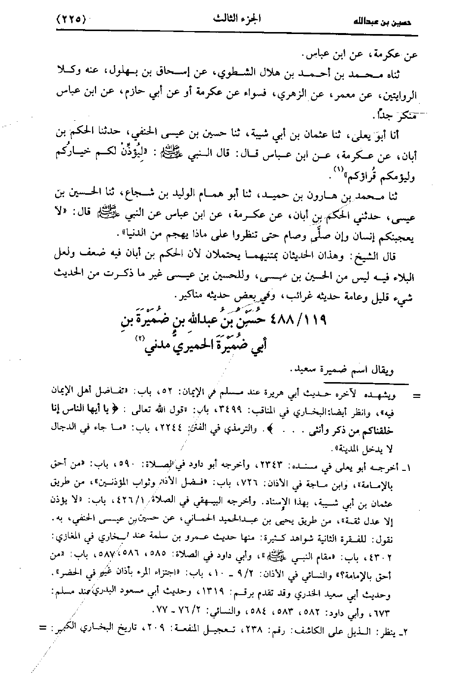 488- حُسَيْنُ بْنُ عَبد اللَّهِ بْنِ ضُمَيْرَةَ بْنِ أَبِي ضُمَيْرَةَ الْحِمْيَرِيُّ مَدَنِيُّ.