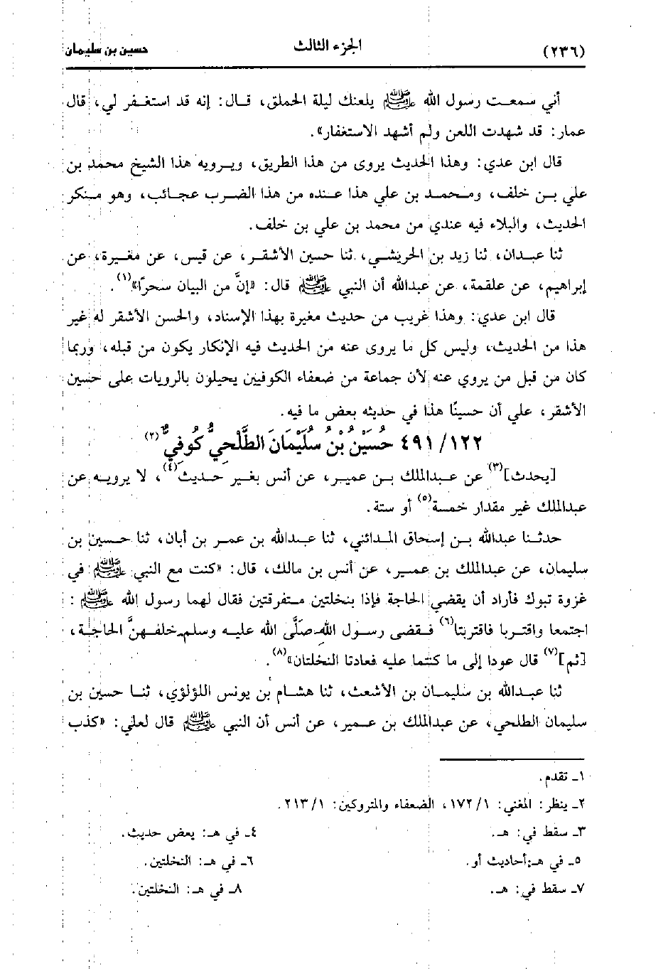 491- حسين بن سليمان الطلحي كوفي.