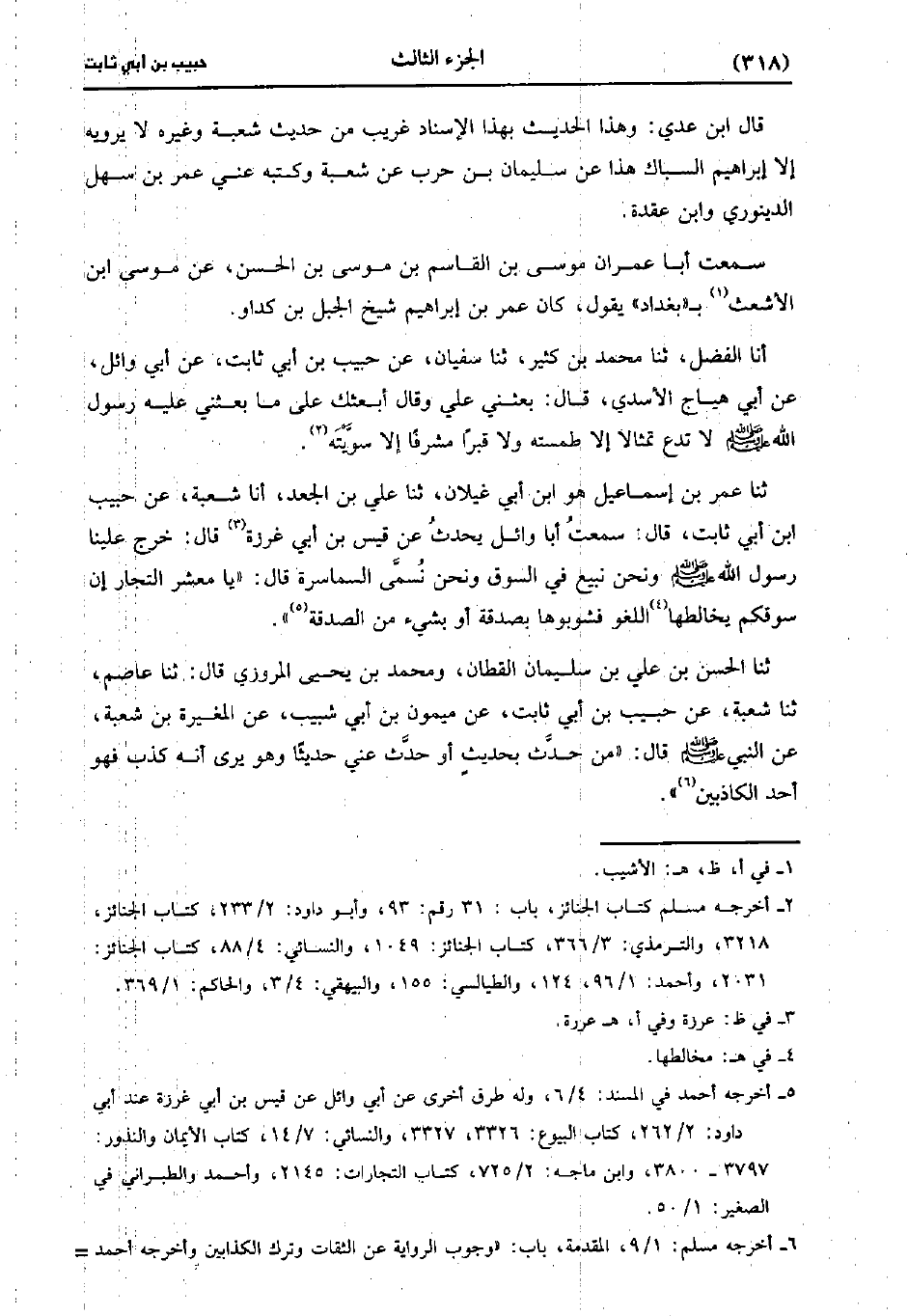 حَدَّثَنَا الْحَسَنُ بْنُ عَلِيِّ بْنِ سُلَيْمَانَ الْقَطَّانُ، وَمُحمد بْنُ يَحْيى المروزي ثال، حَدَّثَنا عاصم، حَدَّثَنا شُعْبَة عَنْ حَبِيبِ بْنِ أَبِي ثَابِتٍ عَنْ مَيْمُونِ بْنِ أَبِي شَبِيبٍ عَنِ الْمُغِيرَةِ بْنِ شُعْبَة عَنِ النَّبِيِّ صَلَّى اللَّهُ عَلَيه وسَلَّم قَال: مَنْ حَدَّثَ بِحَدِيثٍ أَوْ حَدَّثَ عَنِّي حَدِيثًا، وَهو يَرَى أَنَّهُ كَذِبٌ فَهُوَ أحد الكاذبين