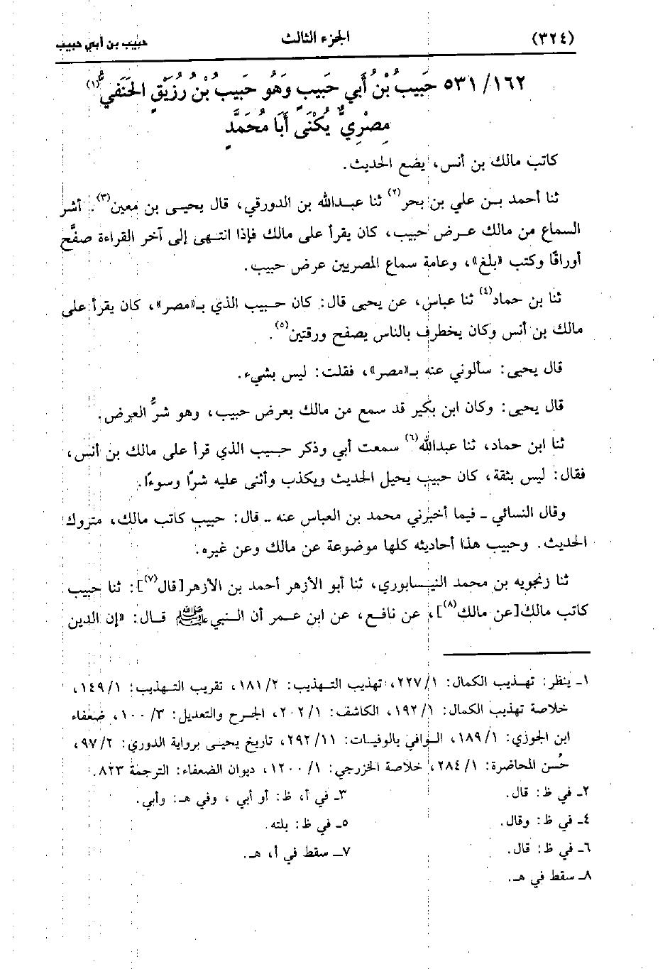 531- حبيب بن أبي حبيب، وَهو حبيب بن رزيق الحنفي مصري، يُكَنَّى أبا مُحَمد.