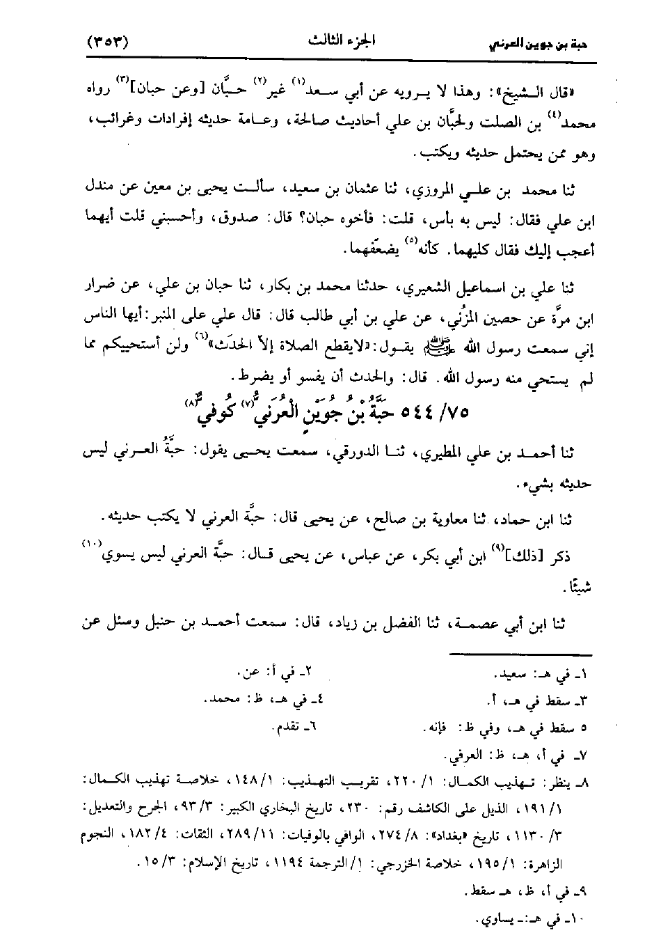 حَدَّثَنَا أحمد بن علي المطيري، حَدَّثَنا الدورقي سمعت يَحْيى يقول حبة العرني ليس حديثه بشَيْءٍ.