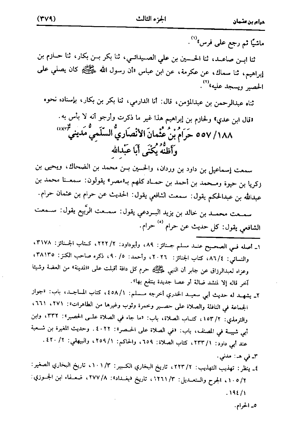 557- حرام بن عثمان الأنصاري السلمي مديني وأظنه، يُكَنَّى أبا عَبد الله.