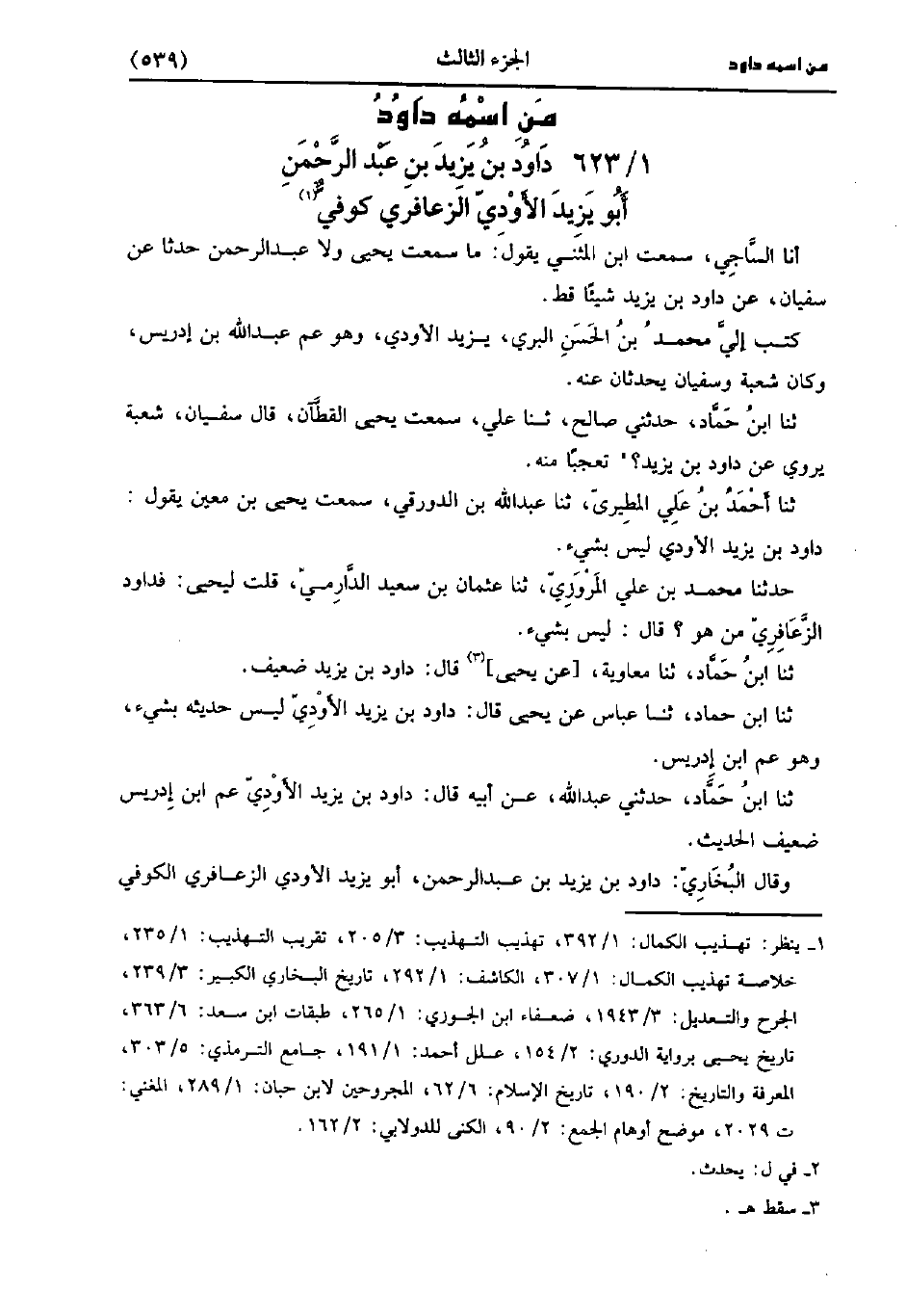623- داود بن يزيد بن عَبد الرحمن أبو يزيد الأودي الزعافري كوفي.
