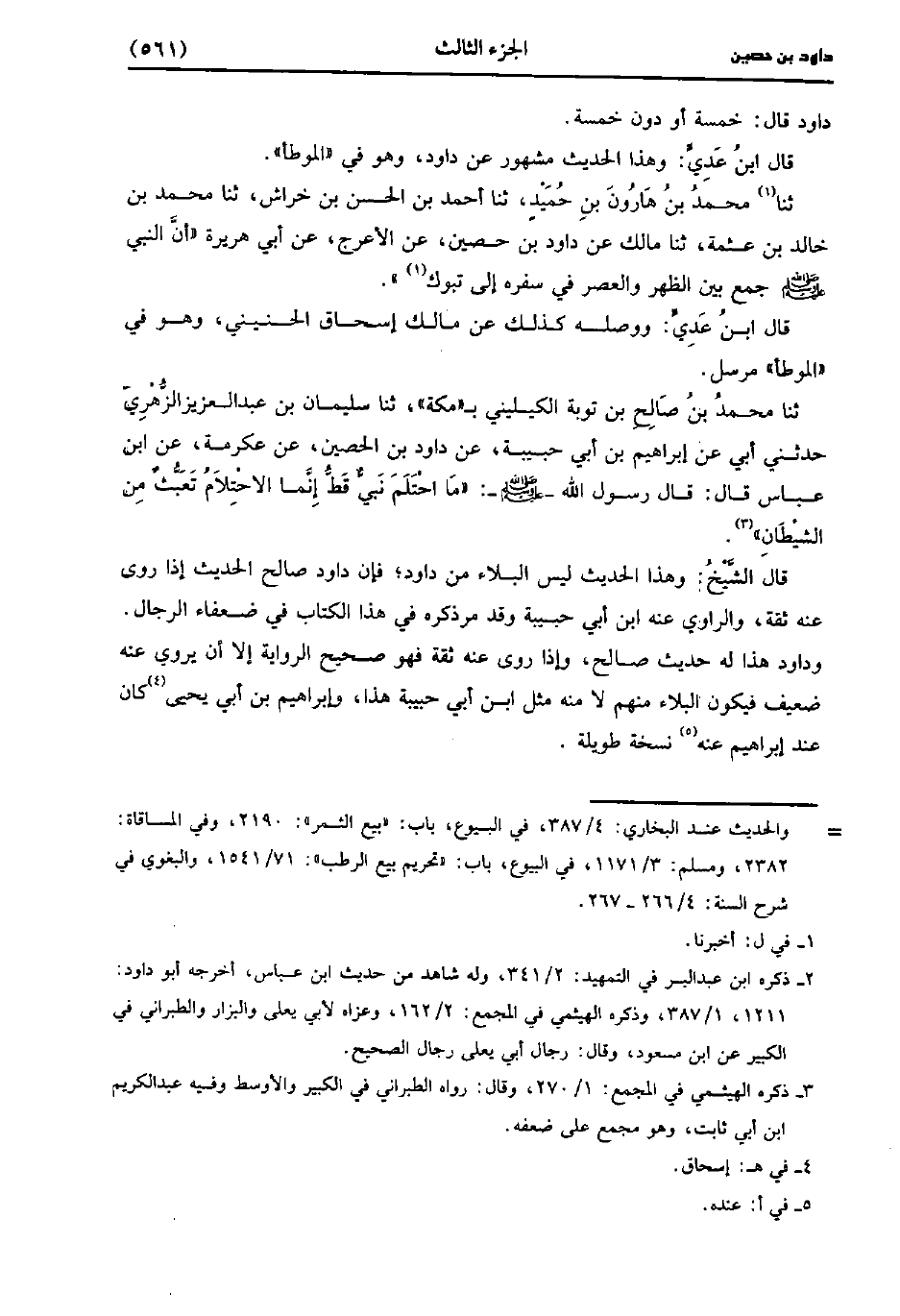 قال الشيخ: وهذا الحديث ليس البلاء من داود فإن داود صالح الحديث إذا روى عنه ثقة والراوي عنه بن أبي حبيبة وقد مر ذكره في هذا الكتاب في ضعفاء الرجال وداود هذا له حديث صالح، وَإذا روى عنه ثقة فهو صحيح الرواية إلاَّ أنه يروي عنه ضعيف فيكون البلاء منهم لا منه مثل بن أبي حبيبة هذا وإبراهيم بن أبي يَحْيى كان عند إبراهيم عنه نسخة طويلة