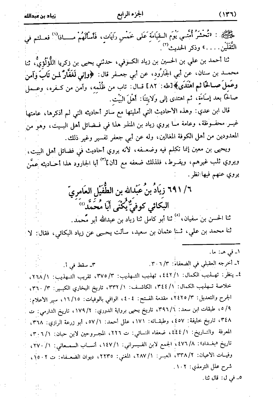 691- زياد بْن عَبد اللَّه بْن الطفيل العامري البَكَّائِي كوفي، يُكَنَّى أبا مُحَمد.