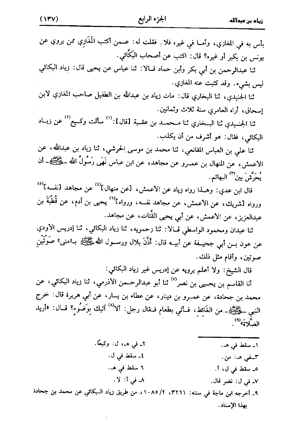 قَالَ الشَّيْخُ: ولاَ أَعْلَمُ يَرْوِيهِ عَنْ إدريس غير زياد البكائي.