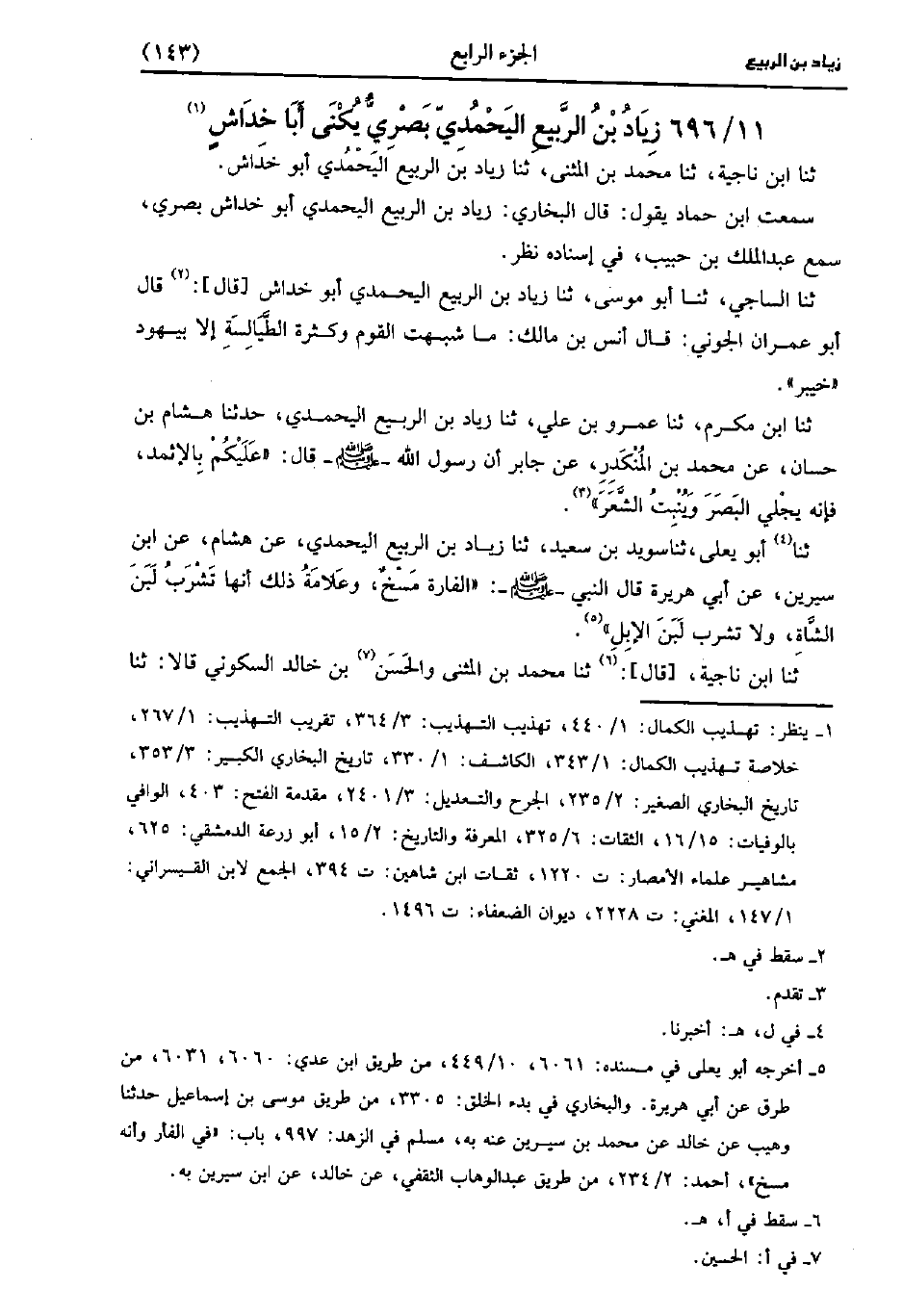 696- زياد بْن الربيع اليحمدي بصري، يُكَنَّى أبا خداش.