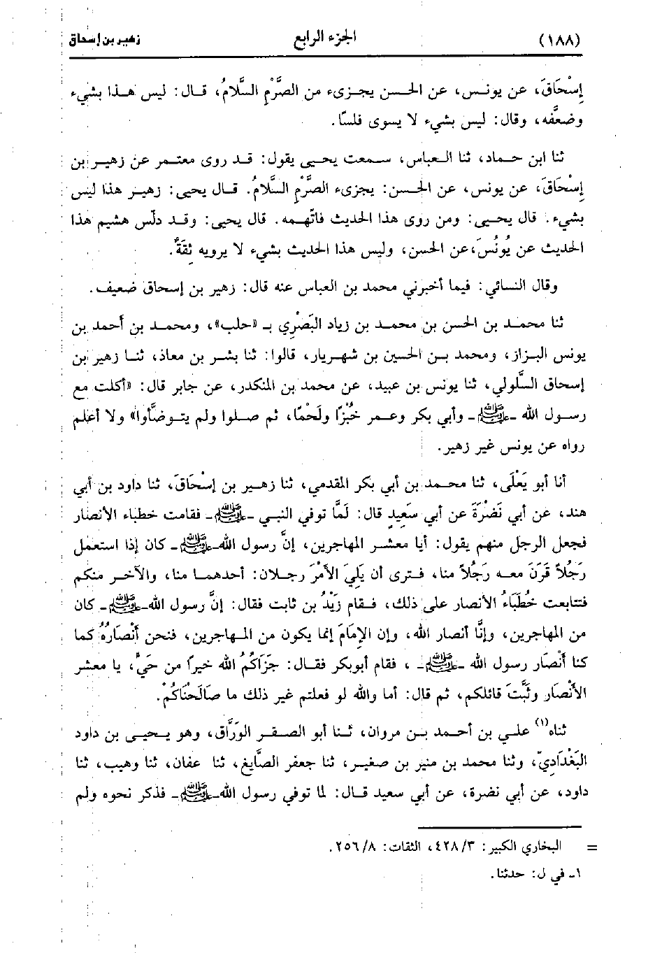 حَدَّثَنَا ابن حماد، حَدَّثَنا العباس سَمِعْتُ يَحْيى يَقُولُ قَدْ رَوَى معتمر عن زهير بْن إسحاق عن يُونُس عن الحسن يجزئ من الصرم السلام قال يَحْيى زهير هذا ليس بشَيْءٍ قال يَحْيى، ومَنْ روى هذا الحديث فاتهمه قال يَحْيى وقد دلس هشيم هذا الحديث عن يُونُس عن الحسن وليس هذا الحديث بشَيْءٍ لا يرويه ثقة.