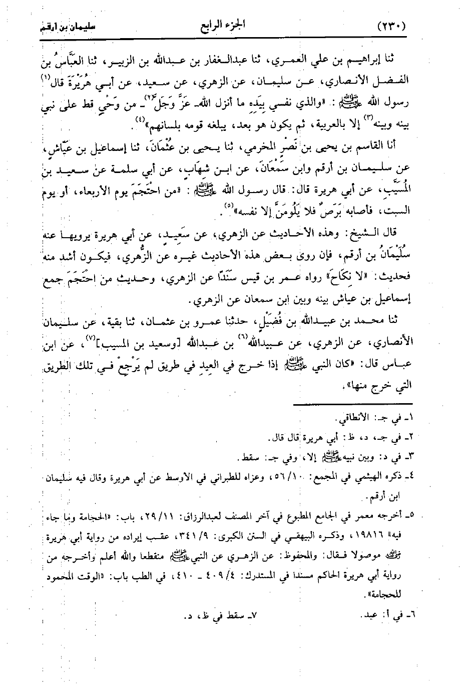 قَالَ الشَّيْخُ: وَهَذِهِ الأَحَادِيثُ، عنِ الزُّهْريّ عَنْ قَالُوا، حَدَّثَنا هِشَامُ بْنُ عَمَّارٍ، حَدَّثَنا سَعِيد، عَن أَبِي هُرَيْرَةَ يرويها عنه سليمان بْن أرقم فإن روى غيره، عنِ الزُّهْريّ فيكون أشد منه فحديث لا نكاح رواه عُمَر بْن قيس سندا، عنِ الزُّهْريّ وحديث من احتجم جمع إسماعيل بن عياش بينه وبين بن سمعان، عنِ الزُّهْريّ.