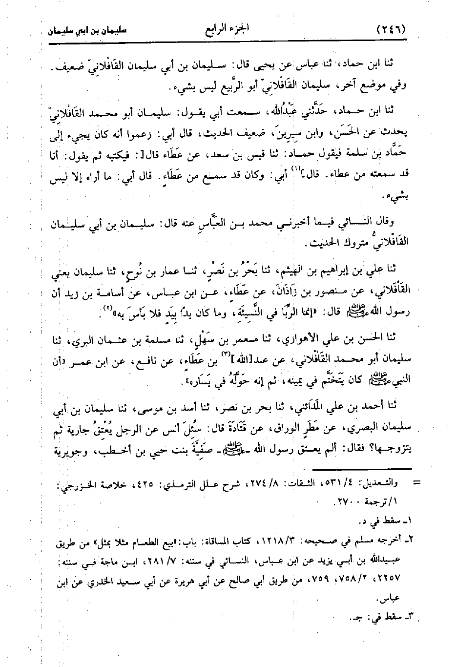وقال النَّسائِيُّ، فيما أخبرني مُحَمد بن العباس، عنه: قال سليمان بْن أبي سليمان القافلاني متروك الْحَدِيث.