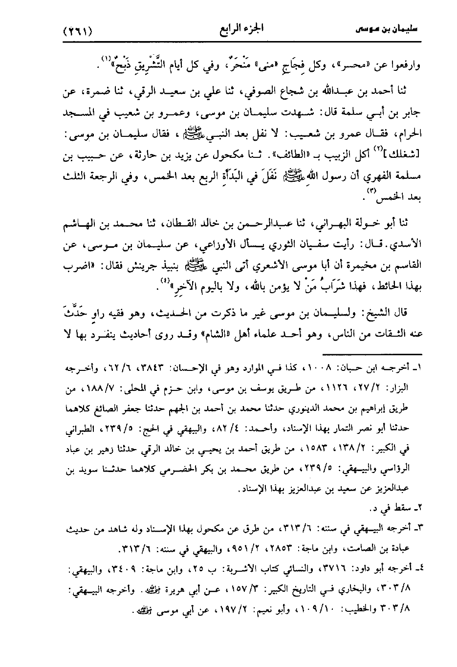 قَالَ الشَّيْخُ: وَلِسُلَيْمَانَ بْنِ مُوسَى غَيْرُ مَا ذَكَرْتُ مِنَ الْحَدِيثِ، وَهو فقيه راو حدث عنه الثقات من الناس، وَهو أحد علماء أهل الشام وقد روى أحاديث ينفرد بها لا
