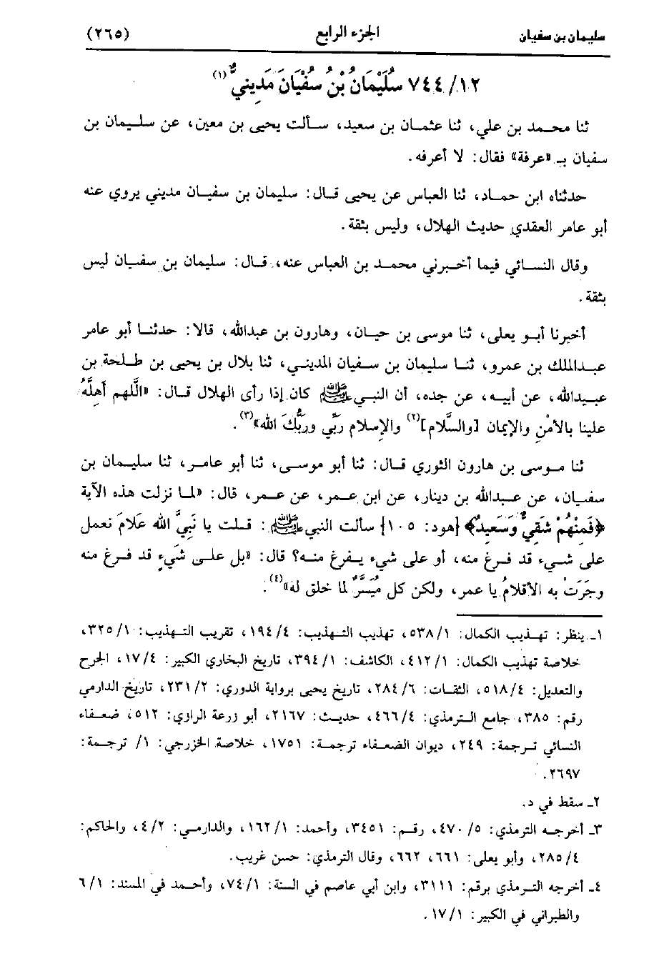 حَدَّثَنَا مُحَمد بْن علي، حَدَّثَنا عثمان بن سَعِيد سألت يَحْيى بْن مَعِين عن سليمان بْن سفيان بعرفة؟ فقال: لاَ أعرفه.