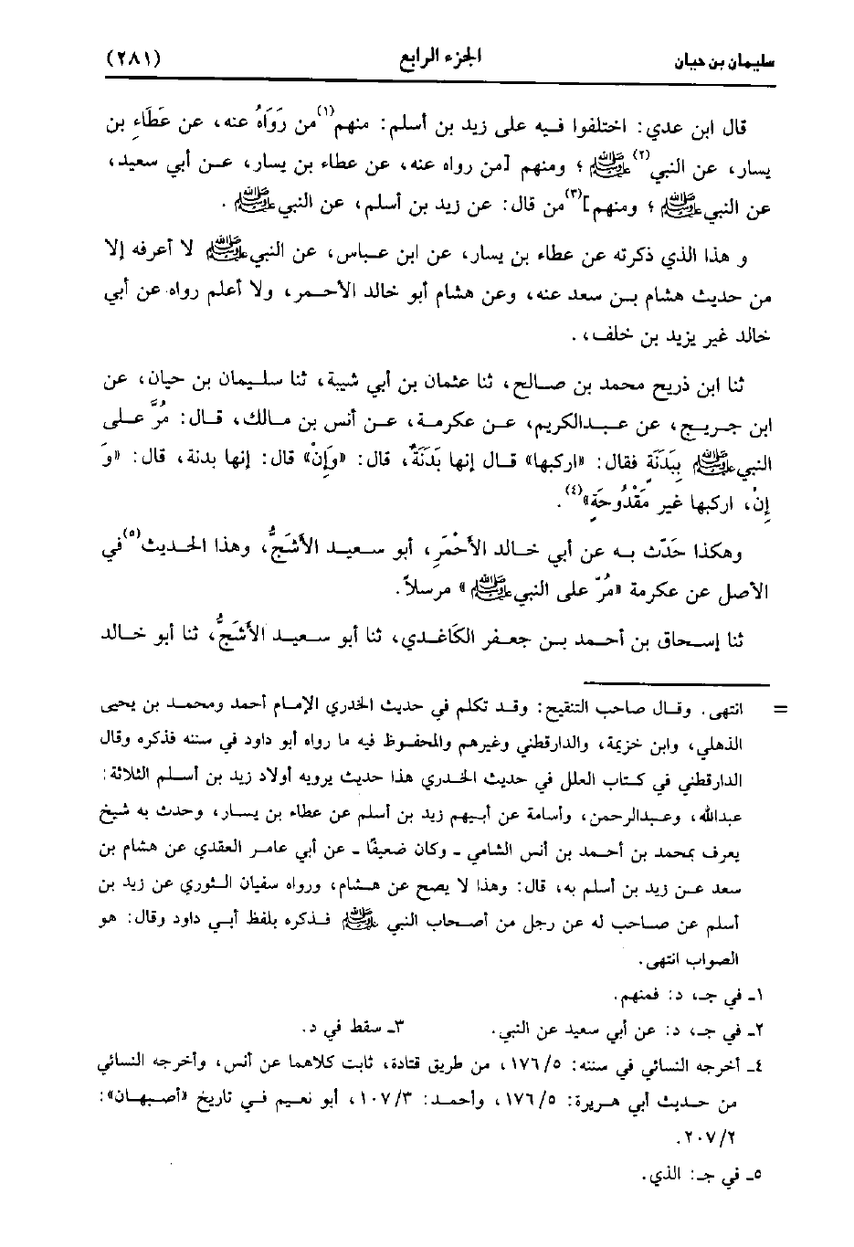 قَالَ ابنُ عَدِي اخْتَلَفُوا فِيهِ عَلَى زَيْدِ بْنِ أَسْلَمَ منهم من رواه عنه عن عطاء بْن يسار عن النَّبِيّ صَلَّى اللَّهُ عَلَيهِ وَسلَّمَ ومنهم من رواه عنه عن عطاء بْن يسار، عَن أبي سَعِيد عن النَّبِيُّ صَلَّى اللَّهُ عَلَيهِ وَسلَّمَ ومنهم من قال عن زيد بْن أسلم عن النَّبِيّ صَلَّى اللَّه عَلَيهِ وَسلَّمَ.