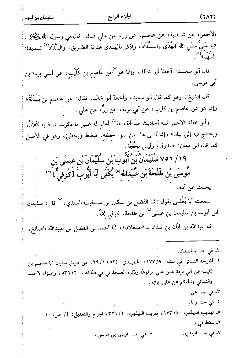 751- سليمان بْن أيوب بْن سليمان بْن عيسى بْن موسى بْن طلحة بْن عُبَيد اللَّه، يُكَنَّى أبا أيوب كوفي.