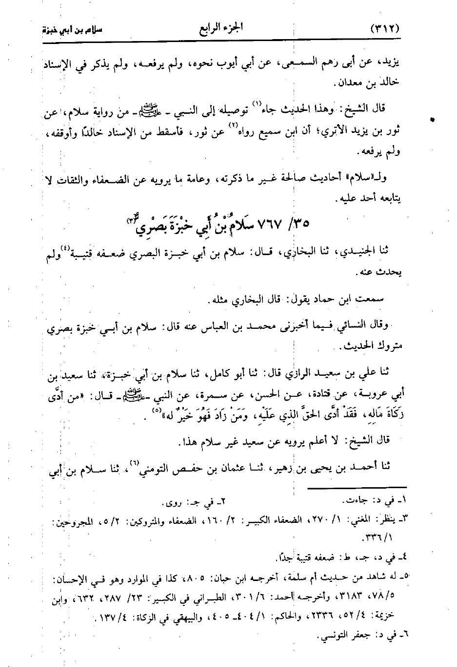 حَدَّثَنَا الجنيدي، حَدَّثَنا البُخارِيّ قال سلام بْن أبي خبزة البصري ضعفه قتيبة ولم يحدث عنه.