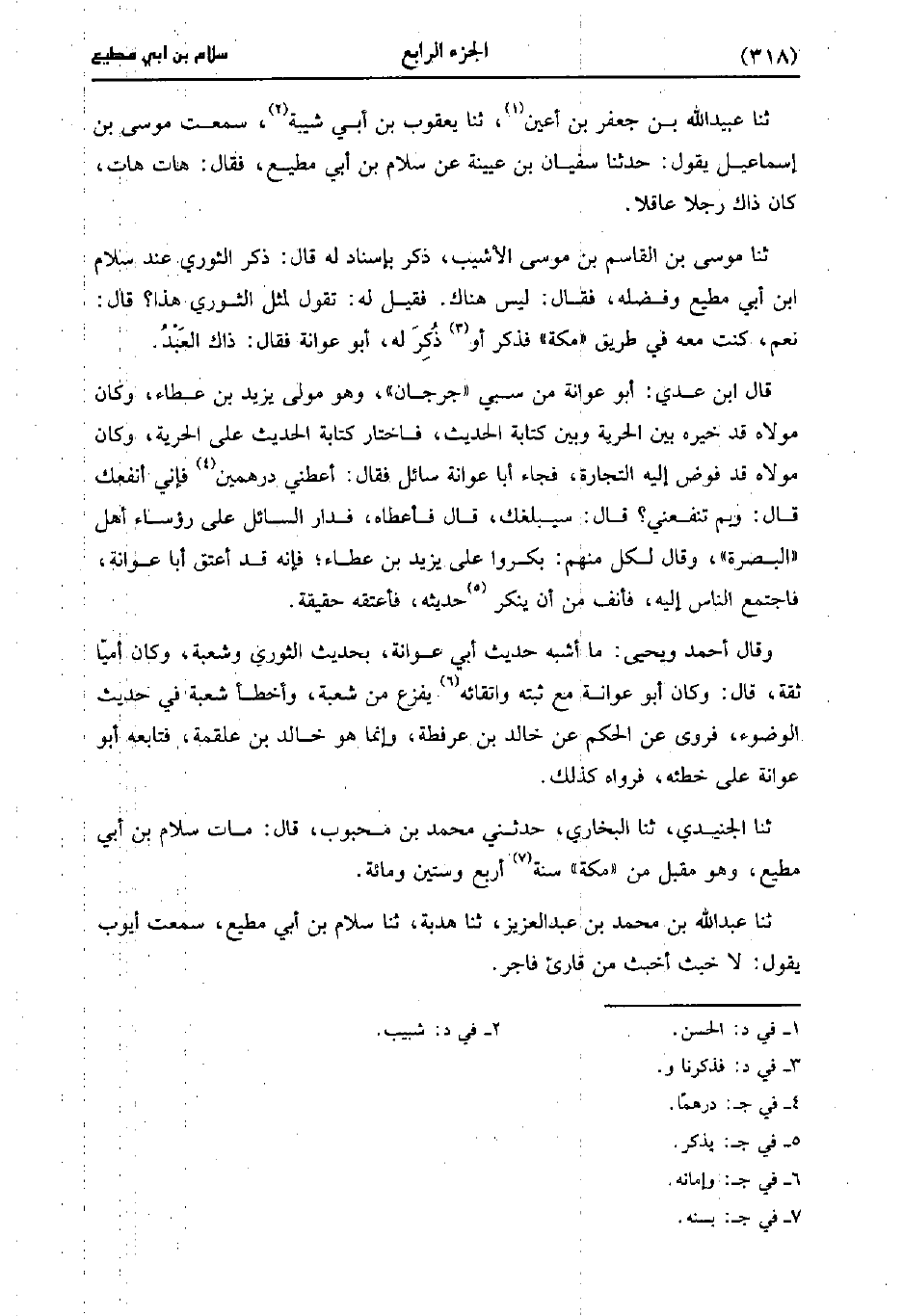 حَدَّثَنَا عُبَيد الله بن جعفر بن أعين، حَدَّثَنا يعقوب بْن أبي شيبة سمعت موسى بْن إسماعيل يقول، حَدَّثَنا سفيان بْن عُيَينة عن سلام بْن أبي مطيع فقال هات هات كان ذاك رجل عاقل.