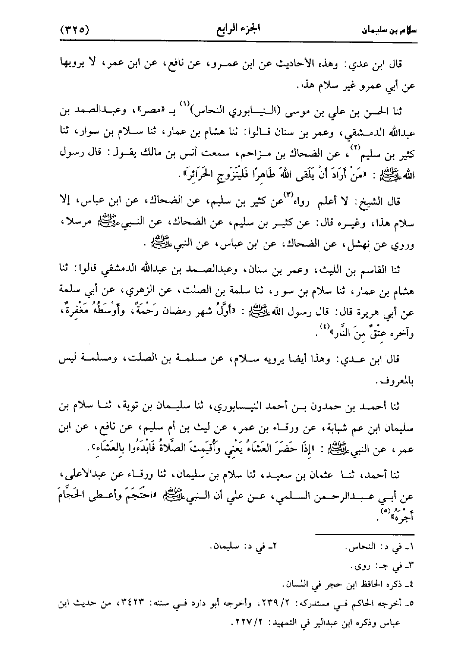 قَالَ ابنُ عَدِي وهذه الأحاديث، عنِ ابْنِ عَمْرو عَنْ نَافِعٍ، عنِ ابْنِ عُمَر لا يَرْوِيهَا، عَن أَبِي عَمْرو غَيْرَ سَلامٍ هَذَا.