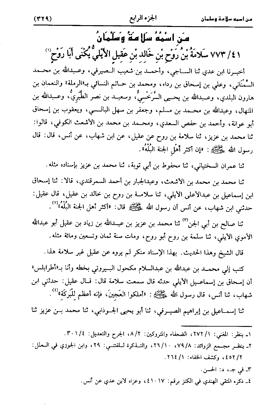 773- سَلامَةُ بْنُ رَوْحِ بْنِ خَالِدِ بْن عُقَيْلٍ الأَيْلِي، يُكَنَّى أبا روح.