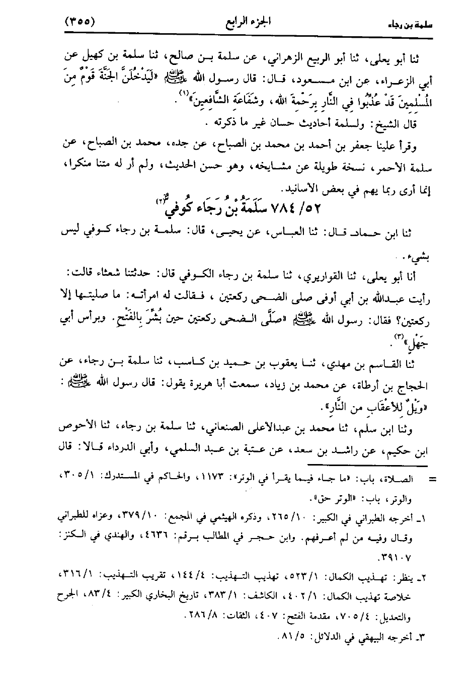 حَدَّثَنَا أبو يعلى، حَدَّثَنا أَبُو الرَّبِيعِ الزَّهْرَانِيُّ عَنْ سَلَمَةَ بن صالح، حَدَّثَنا سَلَمَةَ بْنِ كُهَيْلٍ، عَن أَبِي الزَّعْرَاءَ، عنِ ابْنِ مَسْعُودٍ، قَال: قَال رَسُولُ اللَّهِ صَلَّى اللَّهُ عَلَيْهِ وَسَلَّمَ لَيَدْخُلَنَّ الْجَنَّةَ قَوْمٌ مِنَ الْمُسْلِمِينَ قَدْ عُذِّبُوا فِي النَّارِ بِرَحْمَةِ اللَّهِ وَشَفَاعَةُ الشَّافِعِينَ.