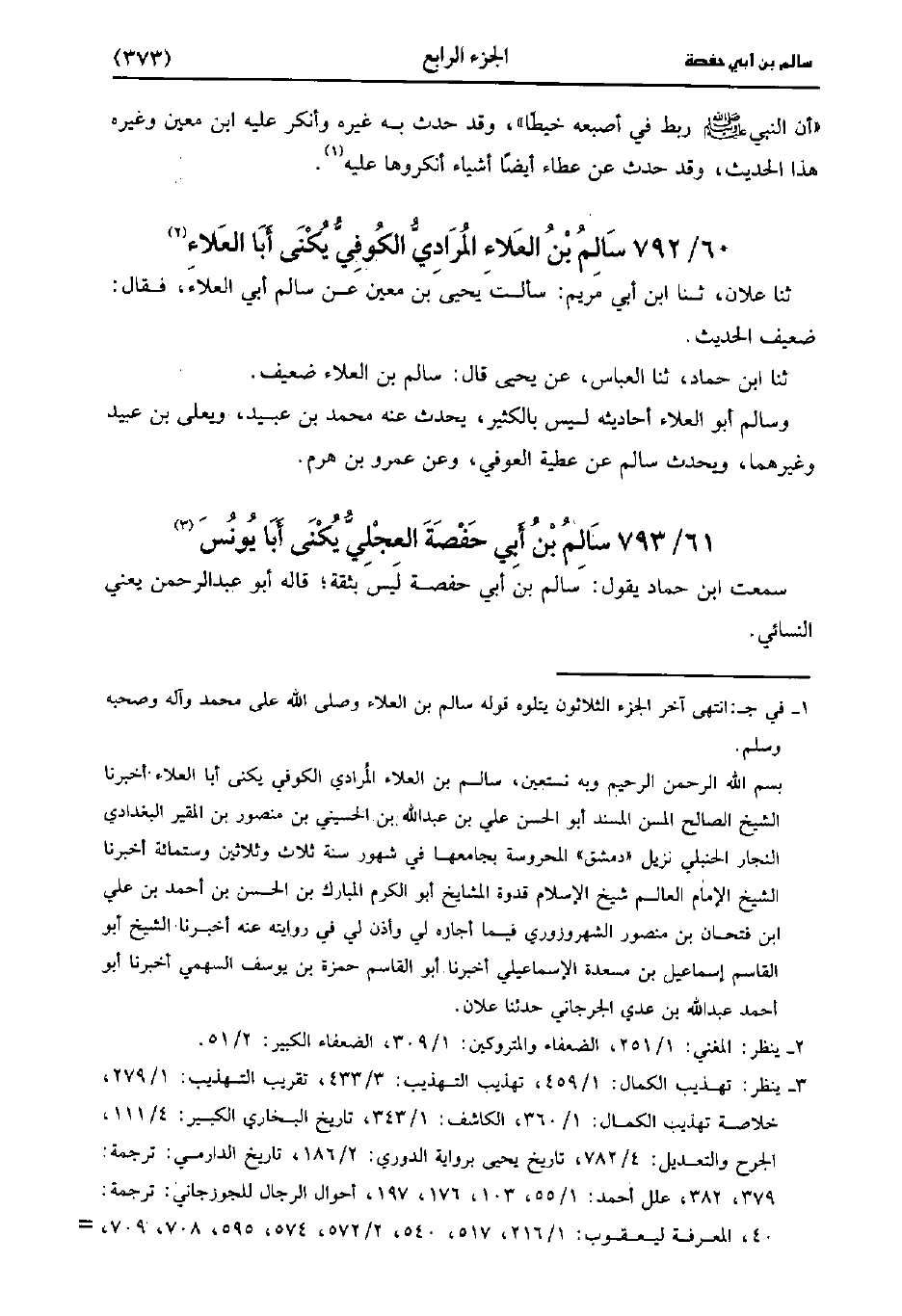792- سَالِمُ بْنُ الْعَلاءِ الْمُرَادِيُّ الكوفي، يُكَنَّى أبا العلاء.