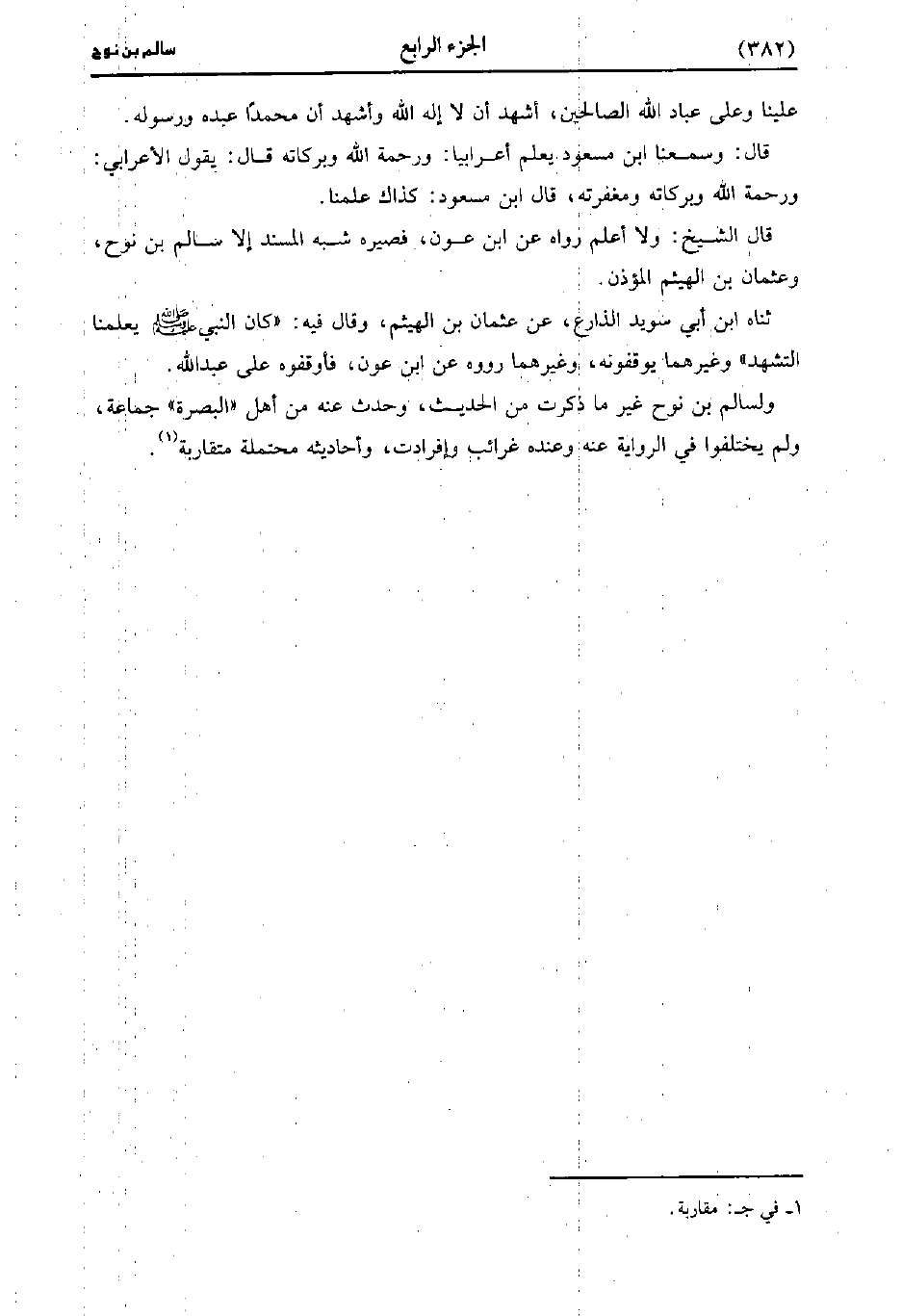 قال الشيخ: ولاَ أَعْلَمُ رَوَاهُ، عنِ ابْنِ عون فصيره شبه المسند إلاَّ سالم بْن نوح وعثمان بْن الهيثم المؤذن.