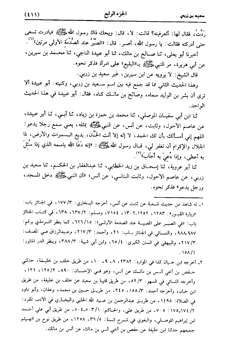 حَدَّثَنَا أَبُو عَرُوبة، حَدَّثَنا إِسْحَاقُ بن زيد الخطابي، حَدَّثَنا عَبد الغفار بن الحكم، حَدَّثَنا سَعِيد بْنُ زَرْبِيٍّ، عَن عَاصِمٍ الأَحْوَلِ وَثَابِتِ الْبَنَّانِيِّ، عَن أَنَس عن أَنّ النَّبِيَّ صَلَّى اللَّهُ عَلَيهِ وَسلَّمَ دخل المسجد ورجل يدعوا فذكر نحوه