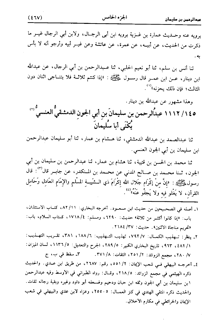 1112- عَبد الرحمن بن سليمان بن أبي الجون الدمشقي العنسي، يُكَنَّى أبا سليمان.