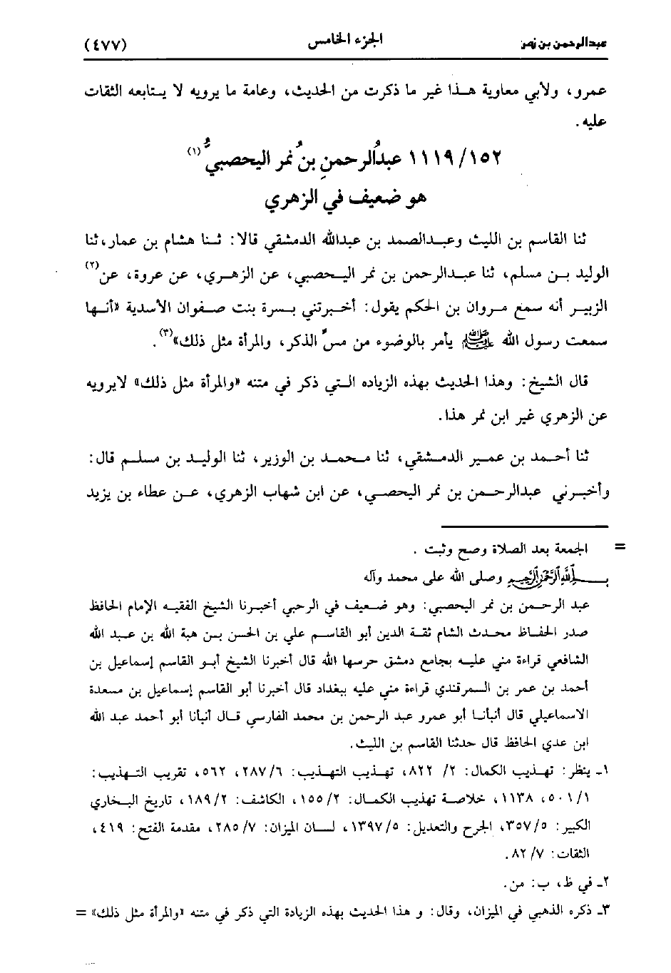 1119- عَبد الرحمن بن نَمِر اليحصبي هو ضعيف في الزُّهْريّ.