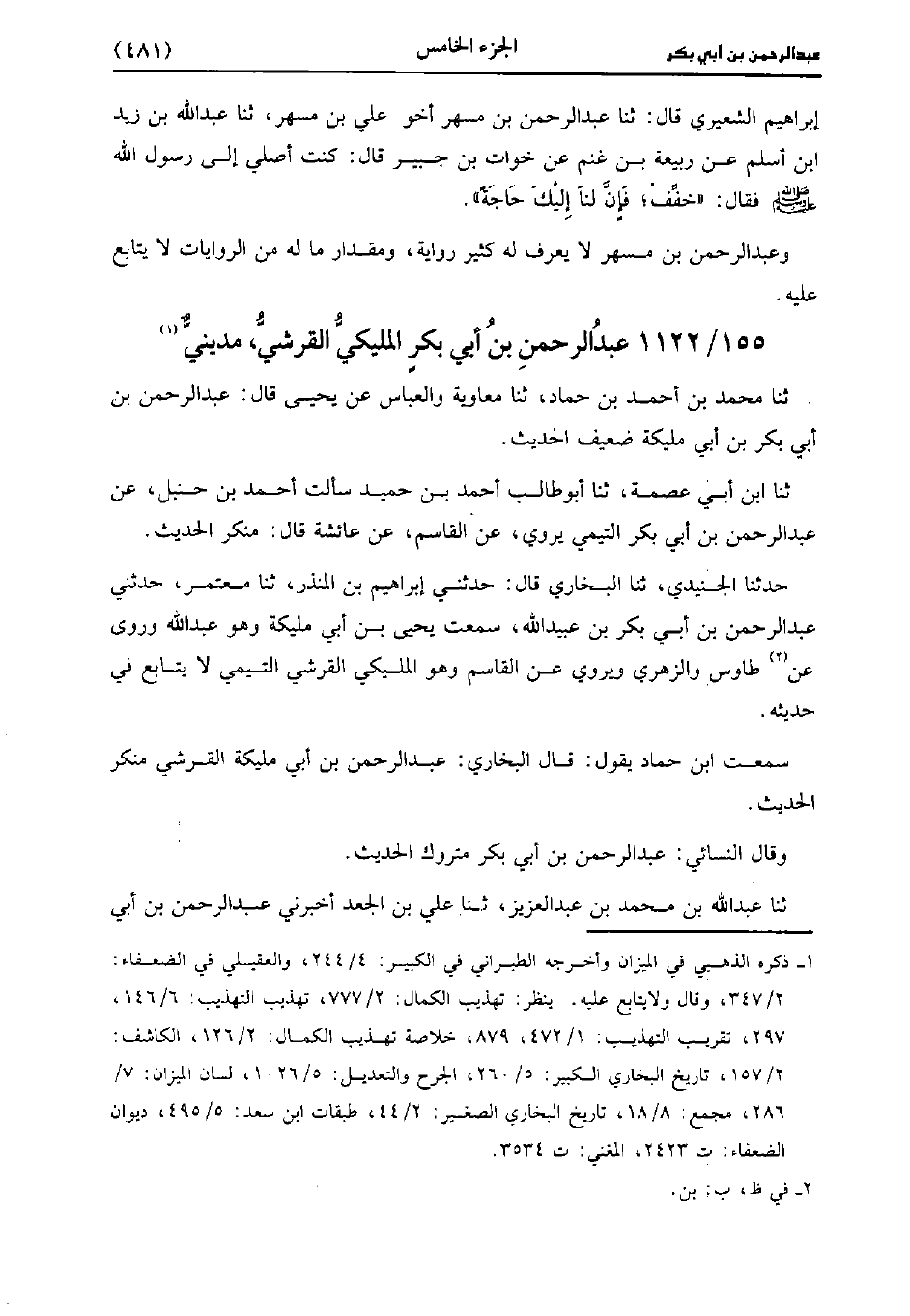 1122- عَبد الرحمن بن أبي بكر المليكي القرشي مديني.
