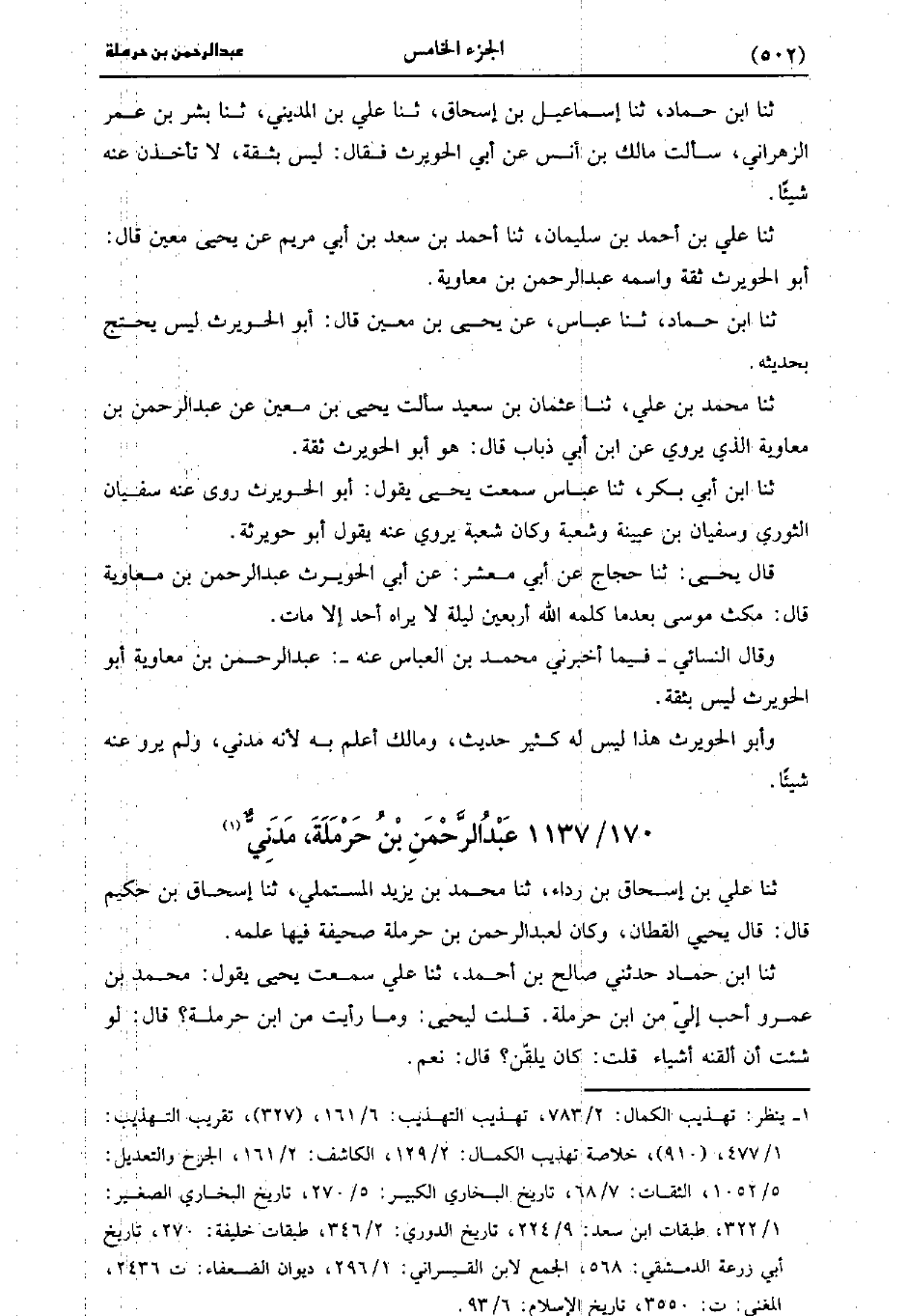 حَدَّثَنَا عَلِيُّ بْنُ أَحْمَدَ بْنِ سليمان، حَدَّثَنا أحمد بن سعد بن أبي مريم، عَن يَحْيى بن مَعِين قال أبو الحويرث ثقة واسمه عَبد الرحمن بن معاوية.