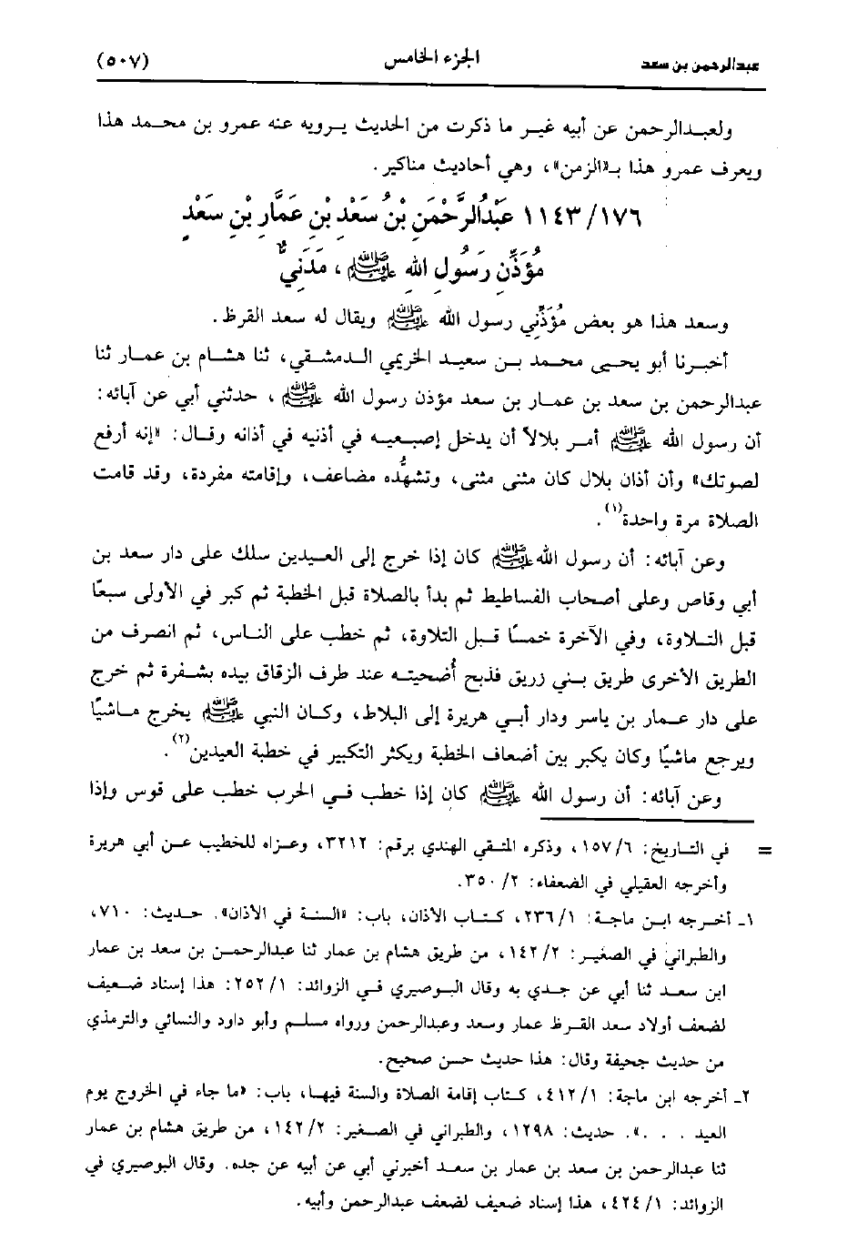 1143- عَبد الرحمن بن سعد بن عمار بن سعد مؤذن رسول الله صَلَّى اللَّهُ عَلَيْهِ وَسَلَّمَ مدني.