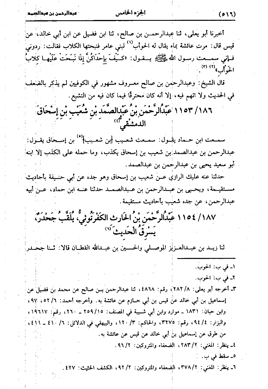 1154- عَبد الرحمن بن الحارث الكفرتوثي يلقب جحدر يسرق الحديث.