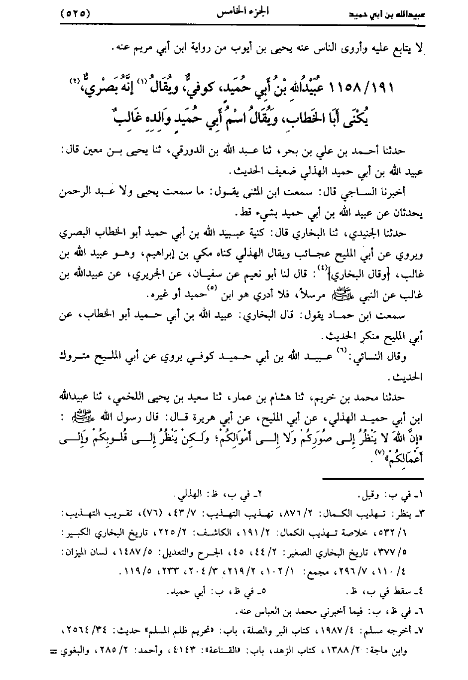 1158- عُبَيد اللَّهِ بْنُ أَبِي حُمَيْدٍ كوفي ويقال إنه بصري، يُكَنَّى أبا الخطاب ويقال اسم أبي حميد والده غالب.