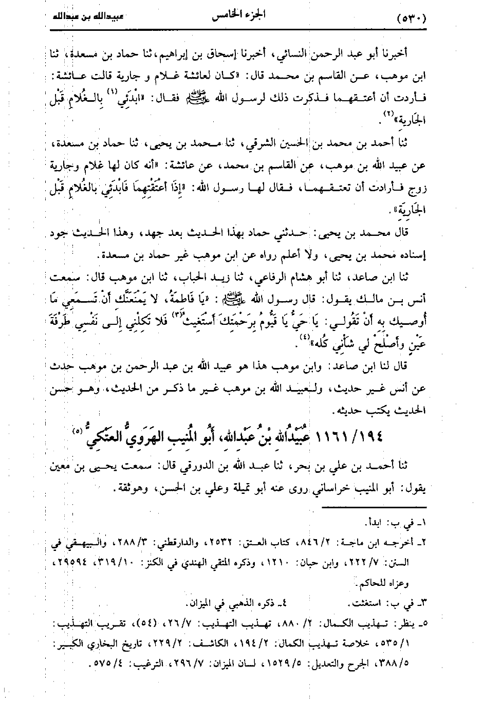 قال لنا ابن صاعد، وابن موهب هذا هو عُبَيد الله بن عَبد الرحمن بن موهب حَدَّث عَن أَنَس غير حديث ولعبيد الله بن موهب غير ما ذكرت من الحديث، وَهو حسن الحديث يكتب حديثه.