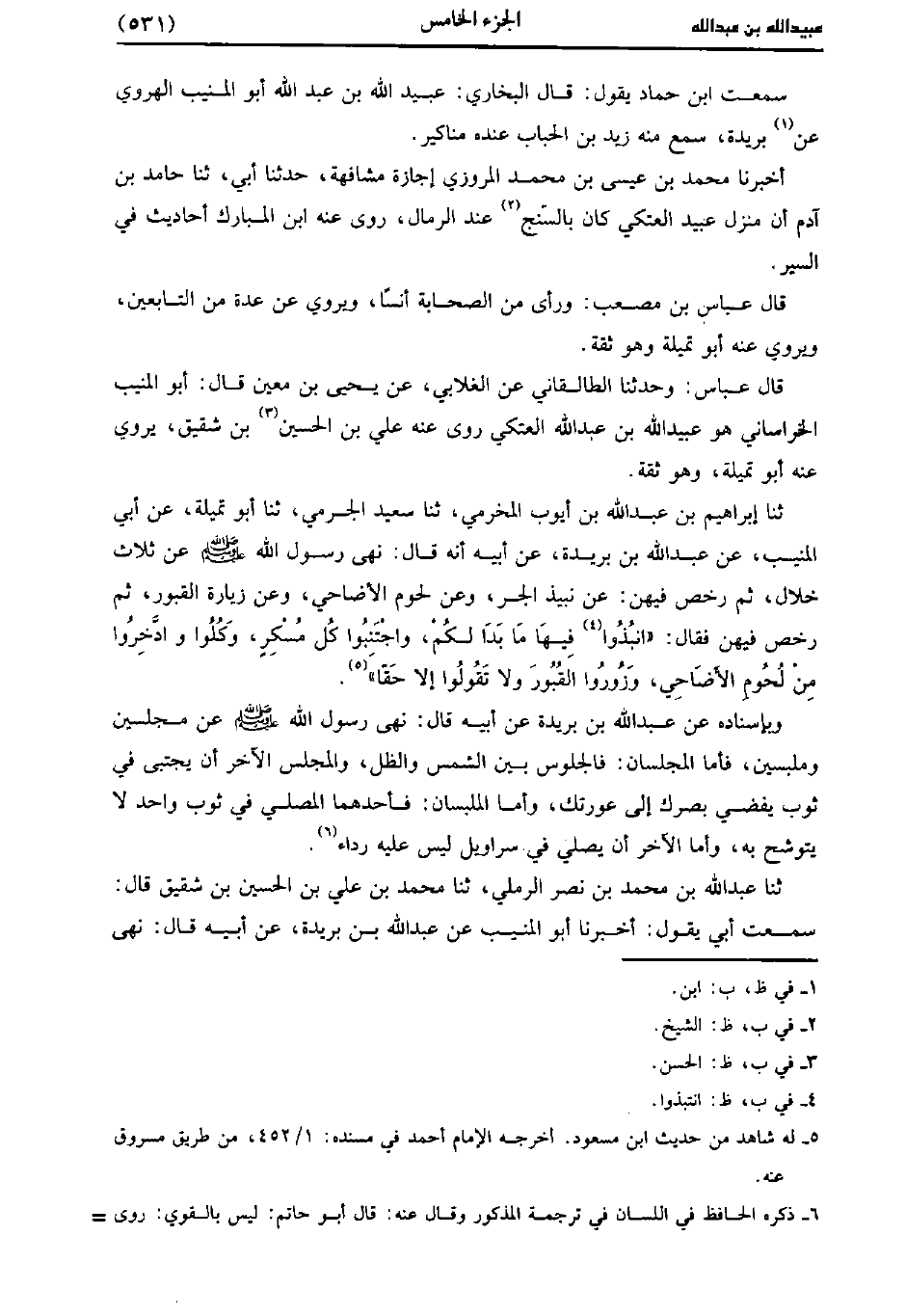 سمعتُ ابن حماد يقول: قال البُخارِيّ عُبَيد الله بن عَبد الله أبو المنيب الهروي عن بريدة سمع منه زيد بن الحباب عنده مناكير.