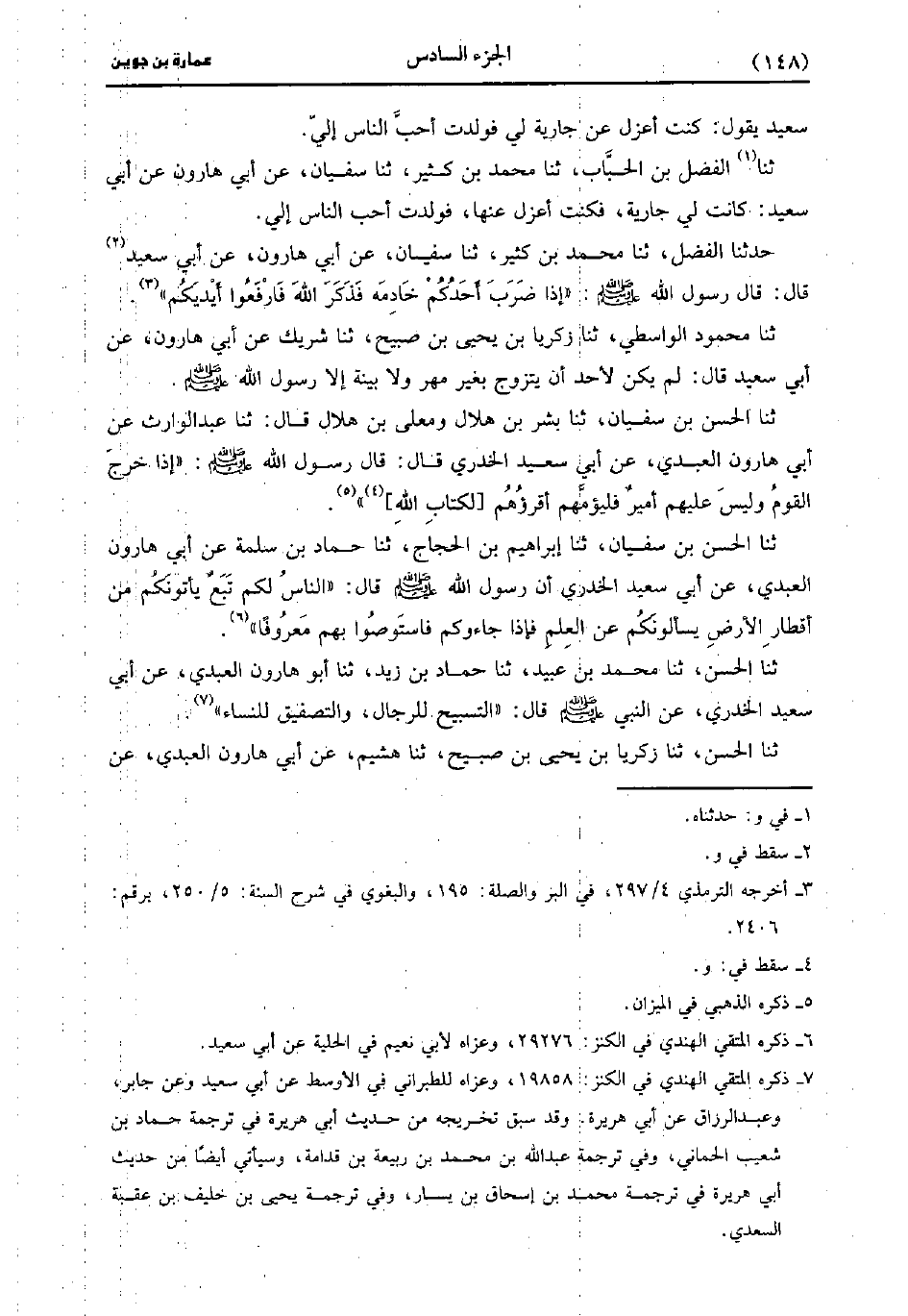 حَدَّثَنَا الْحَسَنُ بْنُ سُفْيَانَ، حَدَّثَنا إِبْرَاهِيمُ بْنُ الْحَجَّاجِ، حَدَّثَنا حَمَّادُ بْن سَلَمَةَ، عَن أَبِي هَارُونَ الْعَبْدِيِّ، عَن أَبِي سَعِيد الْخُدْرِيِّ إِنَّ رَسُولَ اللَّهِ صَلَّى اللَّهُ عَلَيْهِ وَسَلَّمَ صَلَّى اللَّهُ عَلَيه وسَلَّم قَال: النَّاسُ لَكُمْ تَبَعٌ يَأْتُونَكُمْ مِنْ أَقْطَارِ الأَرْضِ يَسْأَلُونَكُمْ عَنِ الْعِلْمِ فإذا جاؤوكم فاستوصوا بهم معروفا.