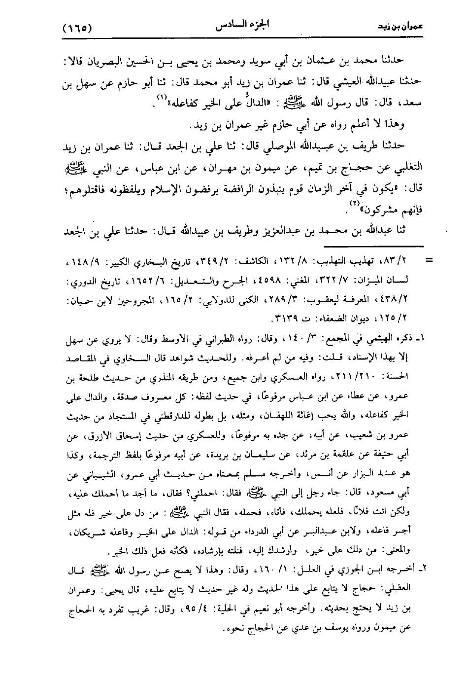 ، حَدَّثَنا مُحَمد بْنُ عُثْمَانَ بْنِ أَبِي سُوَيْدٍ، وَمُحمد بْنُ يَحْيى بْنِ الْحُسَيْنِ الْبَصْرِيَّانِ، قَالا: حَدَّثَنا عُبَيد الله العيشي، قَال: حَدَّثَنا عمران بْن زيد أَبُو مُحَمد، قَال: حَدَّثَنا أَبُو حَازِمٍ عَنْ سَهْلِ بْنِ سَعْدٍ، قَال: قَال رَسُولُ اللَّهِ صَلَّى اللَّهُ عَلَيْهِ وَسَلَّمَ الدَّالُّ عَلَى الْخَيْرِ كَفَاعِلِهِ.