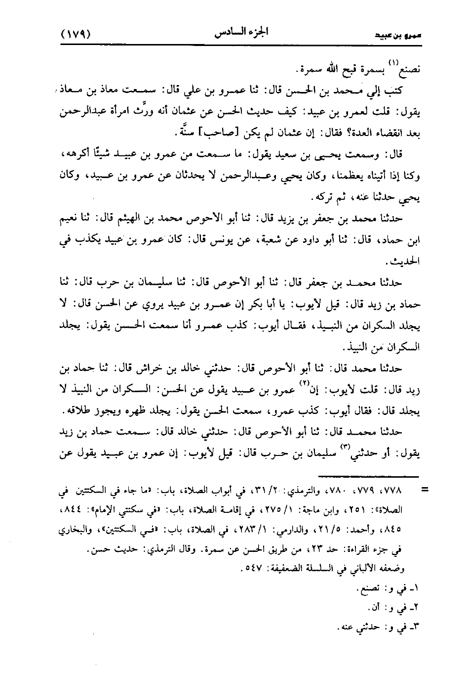 حَدَّثَنَا مُحَمد، قَال: حَدَّثَنا أَبُو الأحوص، قَال: حَدَّثني خالد، قَالَ: سَمِعْتُ حماد بْن زيد يَقُولُ أو، حَدَّثني سليمان بْن حرب، قَال: قِيل لأَيُّوبَ إِنَّ عَمْرو بْنَ عُبَيد يقول عن