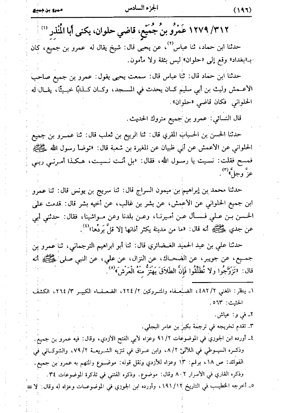 1279- عَمْرو بْن جميع قاضي حلوان، يُكَنَّى أبا المنذر.