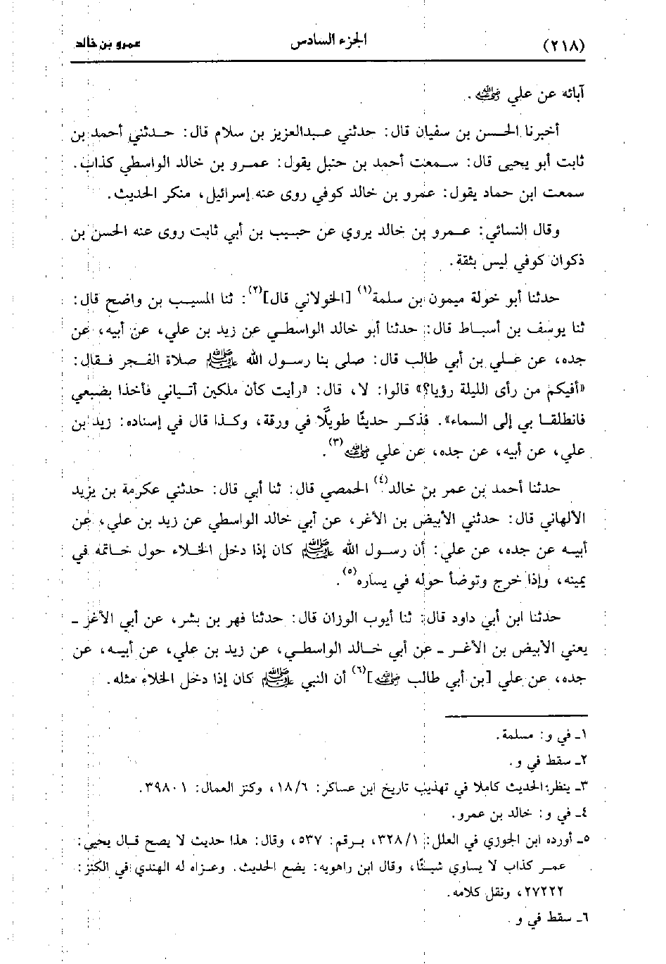 حَدَّثَنَا الْحَسَنُ بْنُ سُفْيَانَ، قَال: حَدَّثني عَبد الْعَزِيزِ بْنُ سَلامٍ، قَال: حَدَّثني أَحْمَد بْن ثابت أَبُو يَحْيى، قَالَ: سَمِعْتُ أَحْمَد بْن حنبل يَقُولُ عَمْرو بْن خالد الواسطي كذاب.