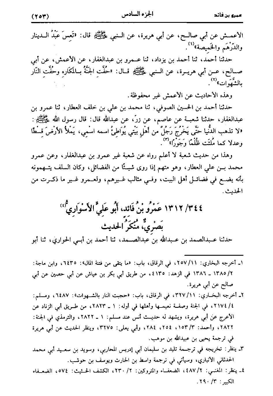 حَدَّثَنَا أحمد، حَدَّثَنا أحمد بن يزداد، حَدَّثَنا عَمْرو بْنُ عَبد الْغَفَّارِ، عَنِ الأَعْمَش، عَن أَبِي صَالِحٍ، عَن أَبِي هُرَيْرَةَ عَنِ النَّبِيِّ صَلَّى اللَّهُ عَلَيه وسَلَّم قَال: حُفَّتِ الْجَنَّةُ بِالْمَكَارِهِ وَحُفَّتِ النَّارُ بِالشَّهَوَاتِ.