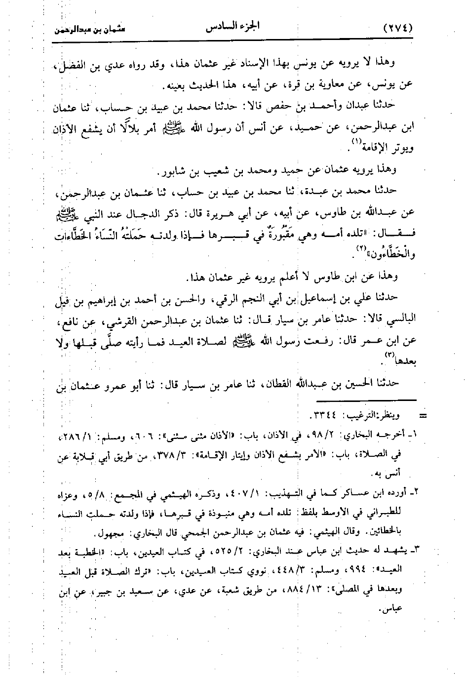 وهذا، عنِ ابن طاووس لا أَعْلَمُ يَرْوِيهِ غَيْرُ عُثْمَانَ هَذَا.