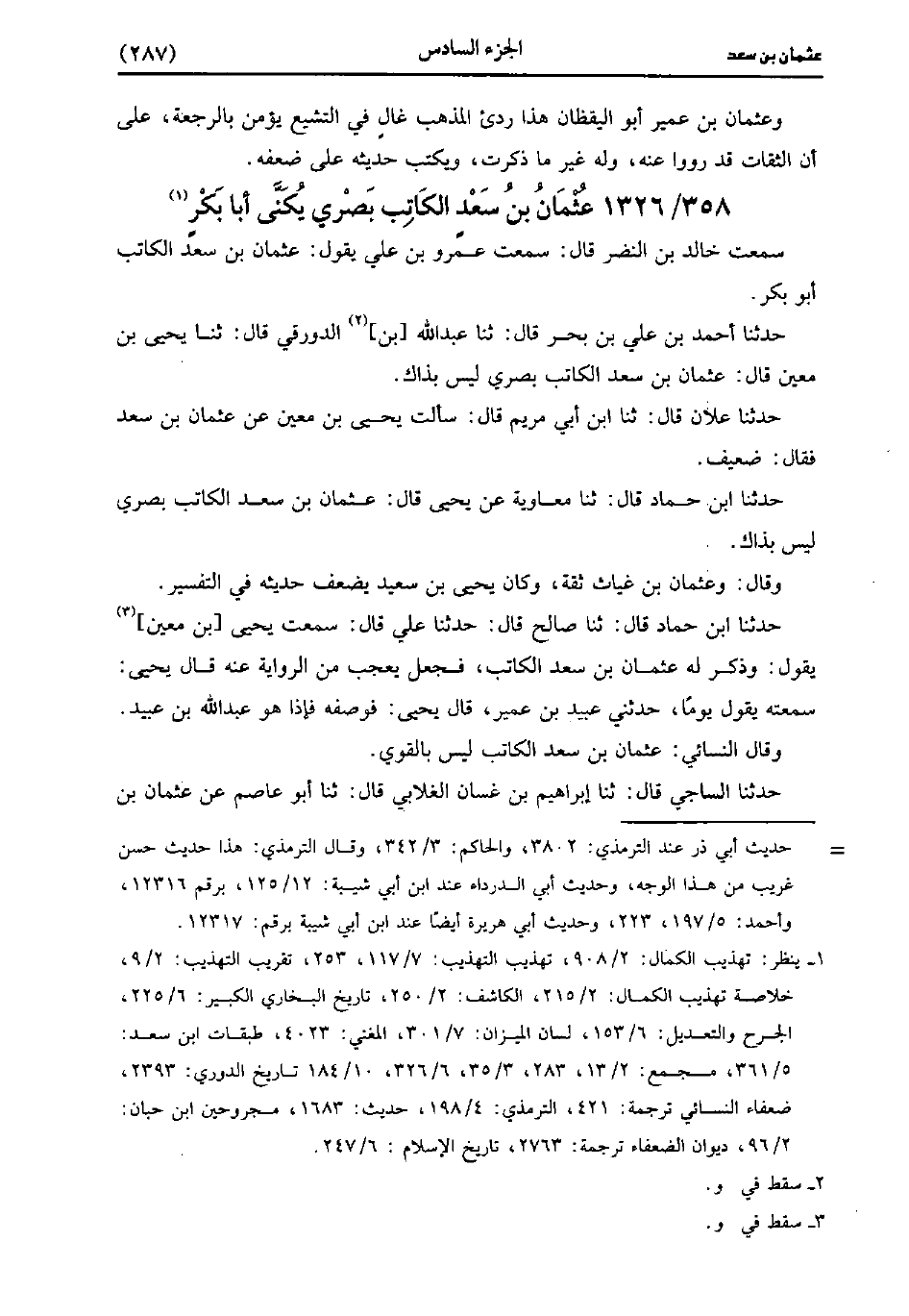 1326- عُثْمَان بْن سعد الكاتب بصري، يُكَنَّى أبا بكر.