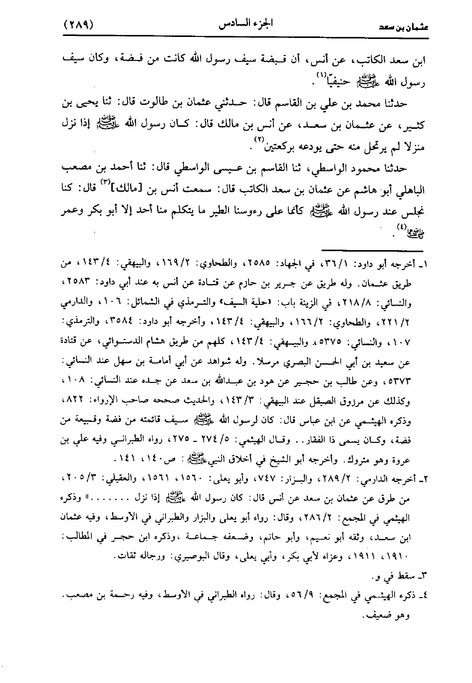 بْنِ سَعْدٍ الْكَاتِبِ، عَن أَنَس أَنَّ قَبْضَةَ سَيْفِ رَسُولِ اللَّهِ صَلَّى اللَّهُ عَلَيْهِ وَسَلَّمَ كَانَتْ مِنْ فِضَّةٍ وَكَانَ سَيْفُ رَسُولِ اللَّهِ صَلَّى اللَّهُ عَلَيْهِ وَسَلَّمَ حَنِيفِيًّا.